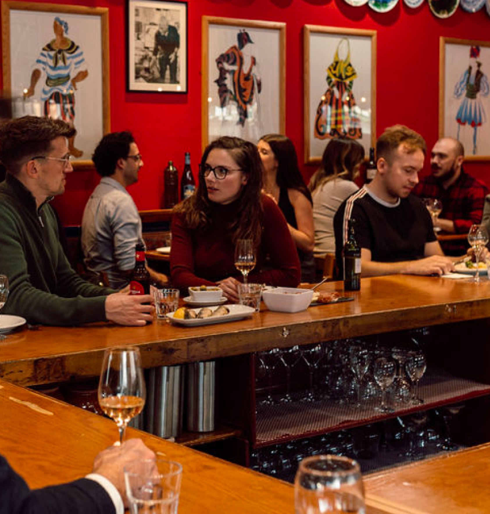 The Spanish use their bars for the ‘tapeo’, drifting from bar to bar nibbling perhaps a piece of tortilla with a small beer in one place before going to the next for a plate of jamón with a glass of Rioja.